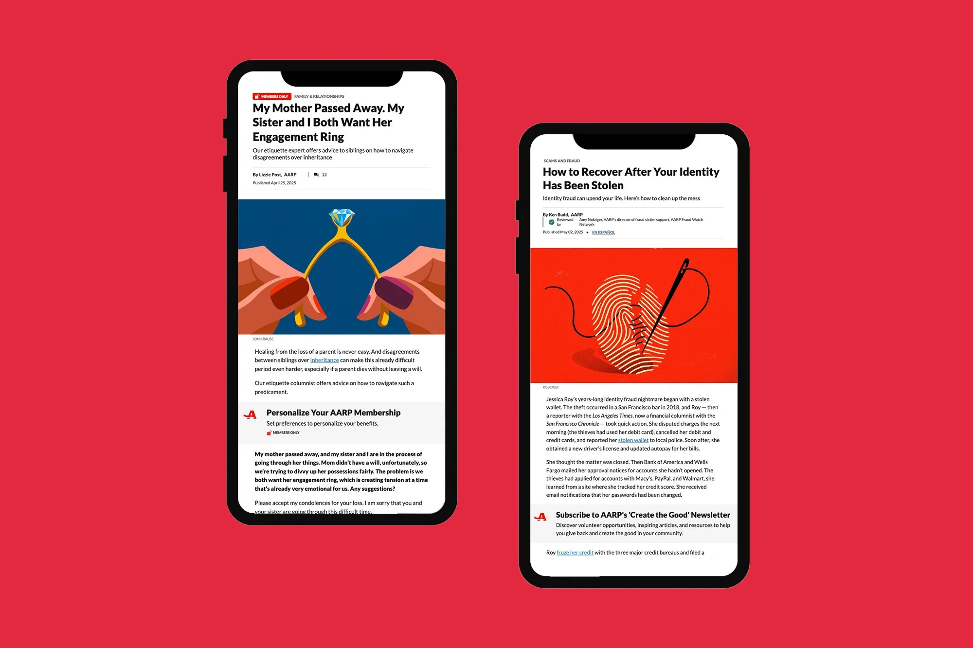 Devan is an editorial designer and Assistant Art Director at AARP Publications.Below is a selection of work from 2016-2026 Feature and section design for AARP’s legacy print publications. AARP The Magazine& AARP Bulletin Commissioned artwork for AARP digital content. Art Direction Photo illustrations for AARP.org news & entertainment stories. Illustration Art direction and web design for long-form and interactive stories. Web Design & Digital Experiences View more View more